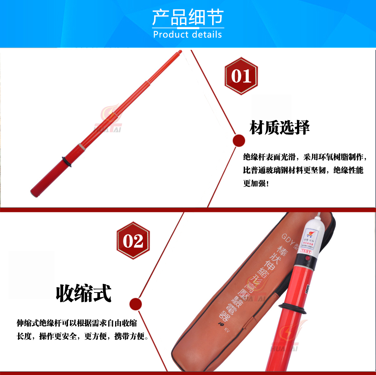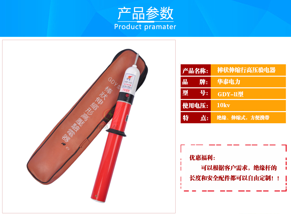 直流驗電器750V、1000V、1500V根據客戶需要,絕緣桿可再加長。