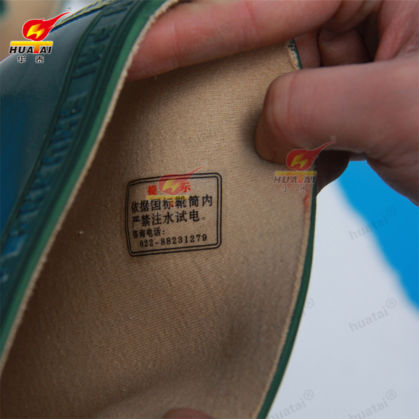 四、穿用絕緣靴時,應將褲管套入靴簡內。穿用絕緣鞋時,褲管不宜長及鞋底外沿條高度,更不能長及地面,保持布幫干燥。