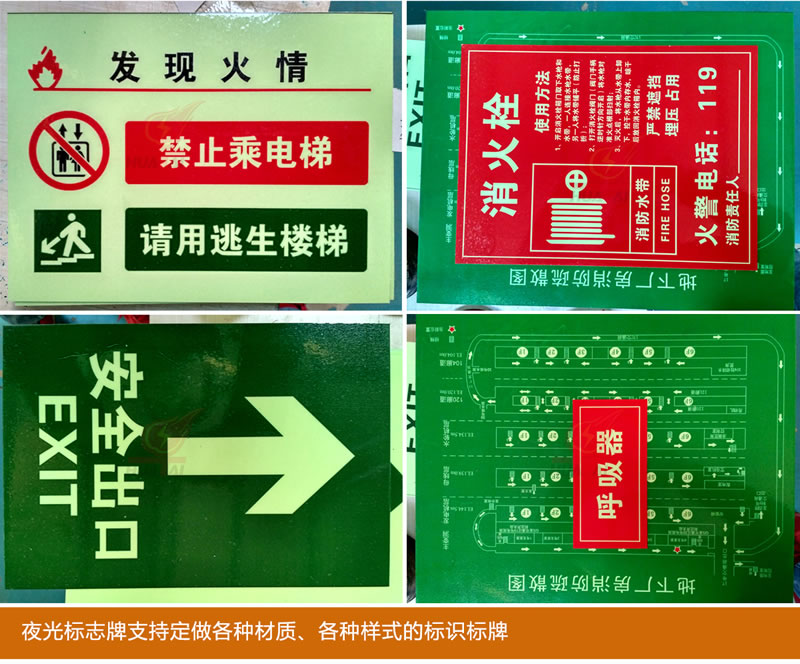 3, PVC夜光標(biāo)識標(biāo)牌吸光速度快,發(fā)光延續(xù)時(shí)間長,通常只需5-10分鐘可持續(xù)在暗處發(fā)光10小時(shí)以上,在消防突發(fā)事故中 起到信息指示逃生作用